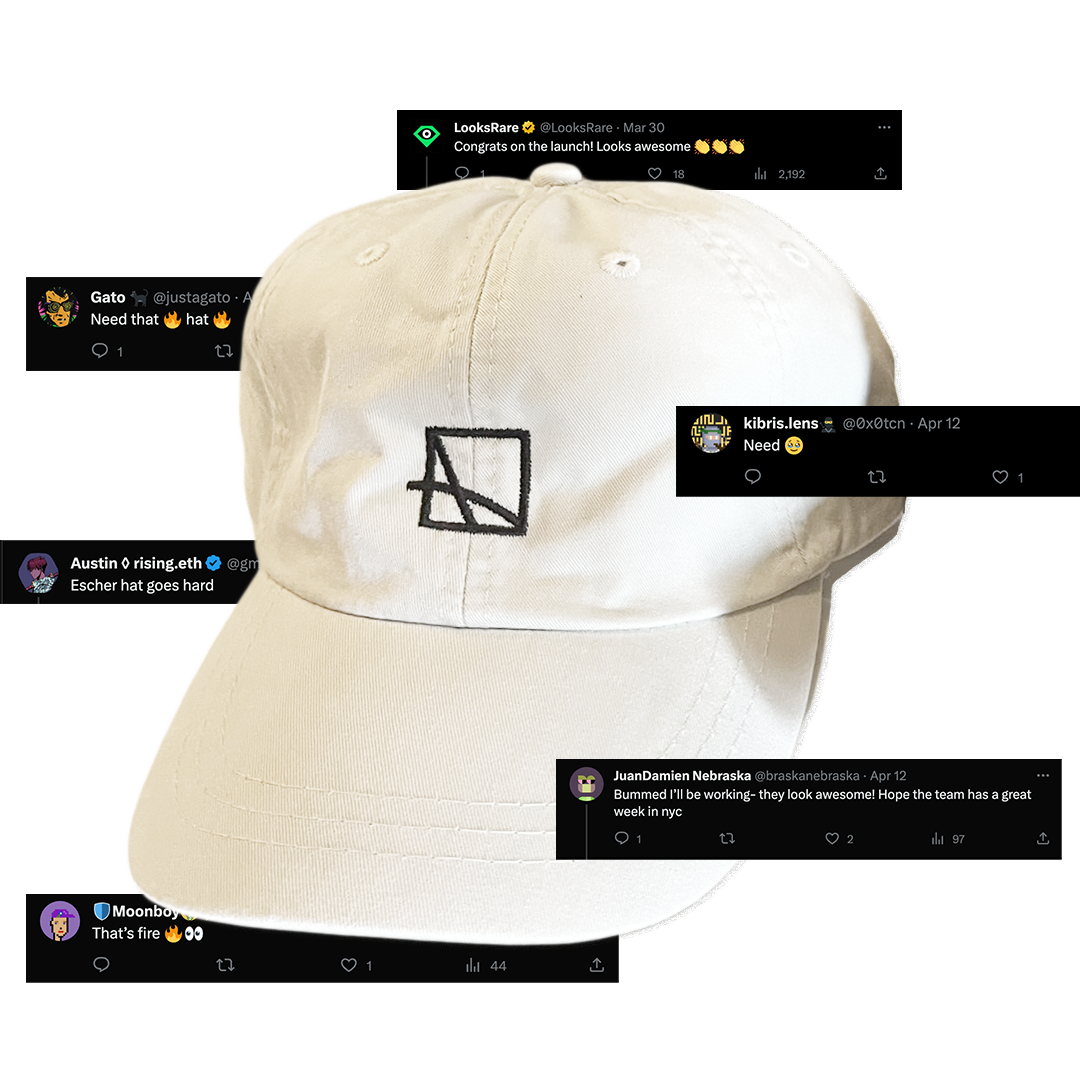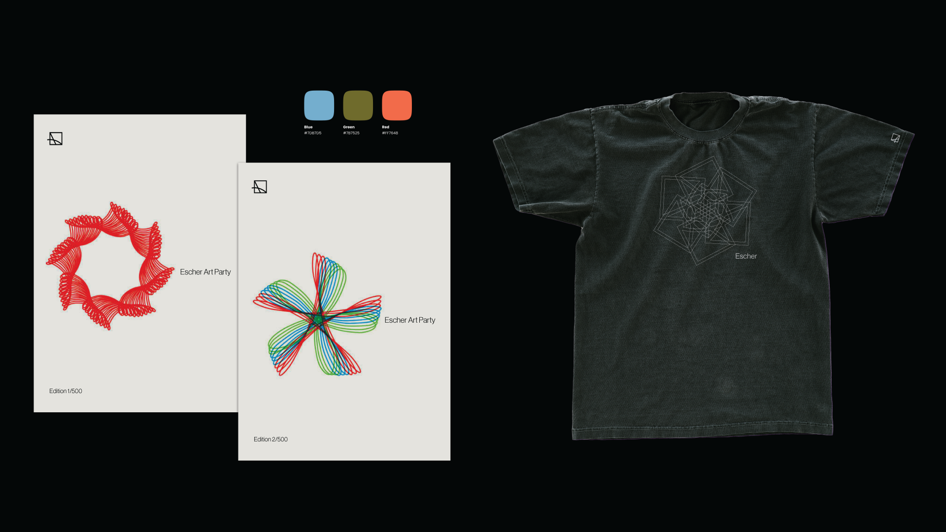 Solution: Spirograph party - create your own spirograph on an editioned and branded poster. We would digitize each one at the event and create an NFT you can own of your own work. T-shirts were also available with the Escher logo tesselating in a spirograph-inspired form.