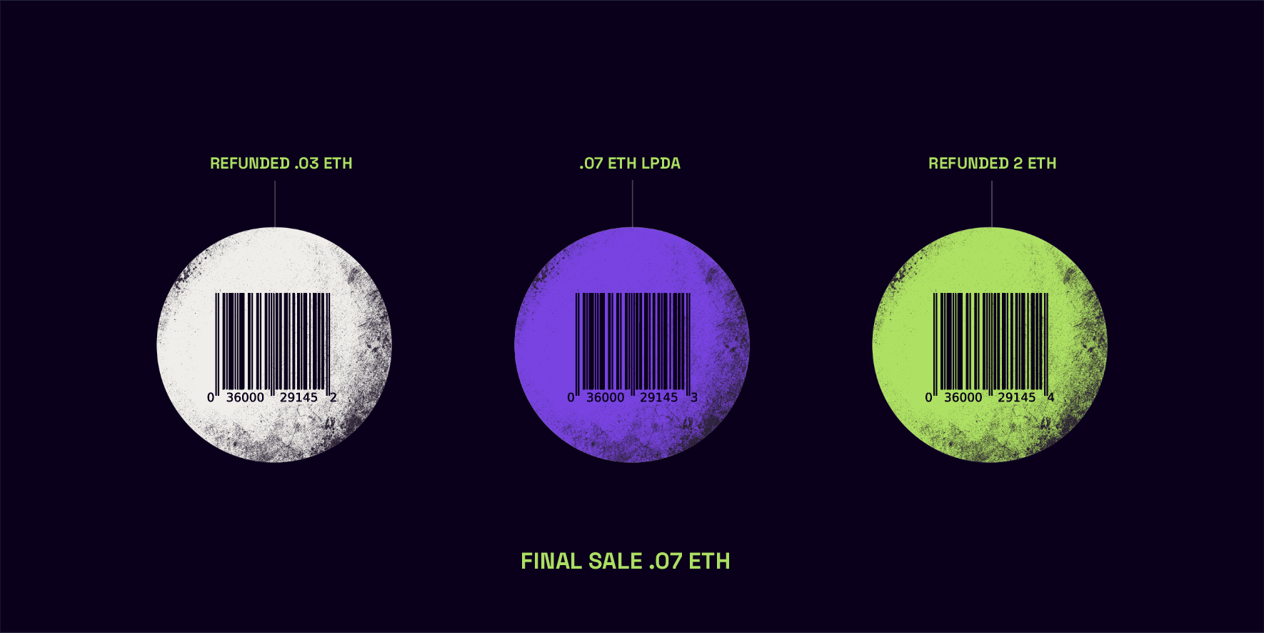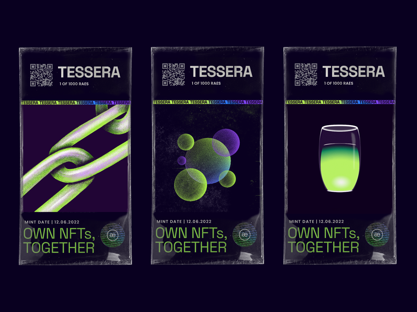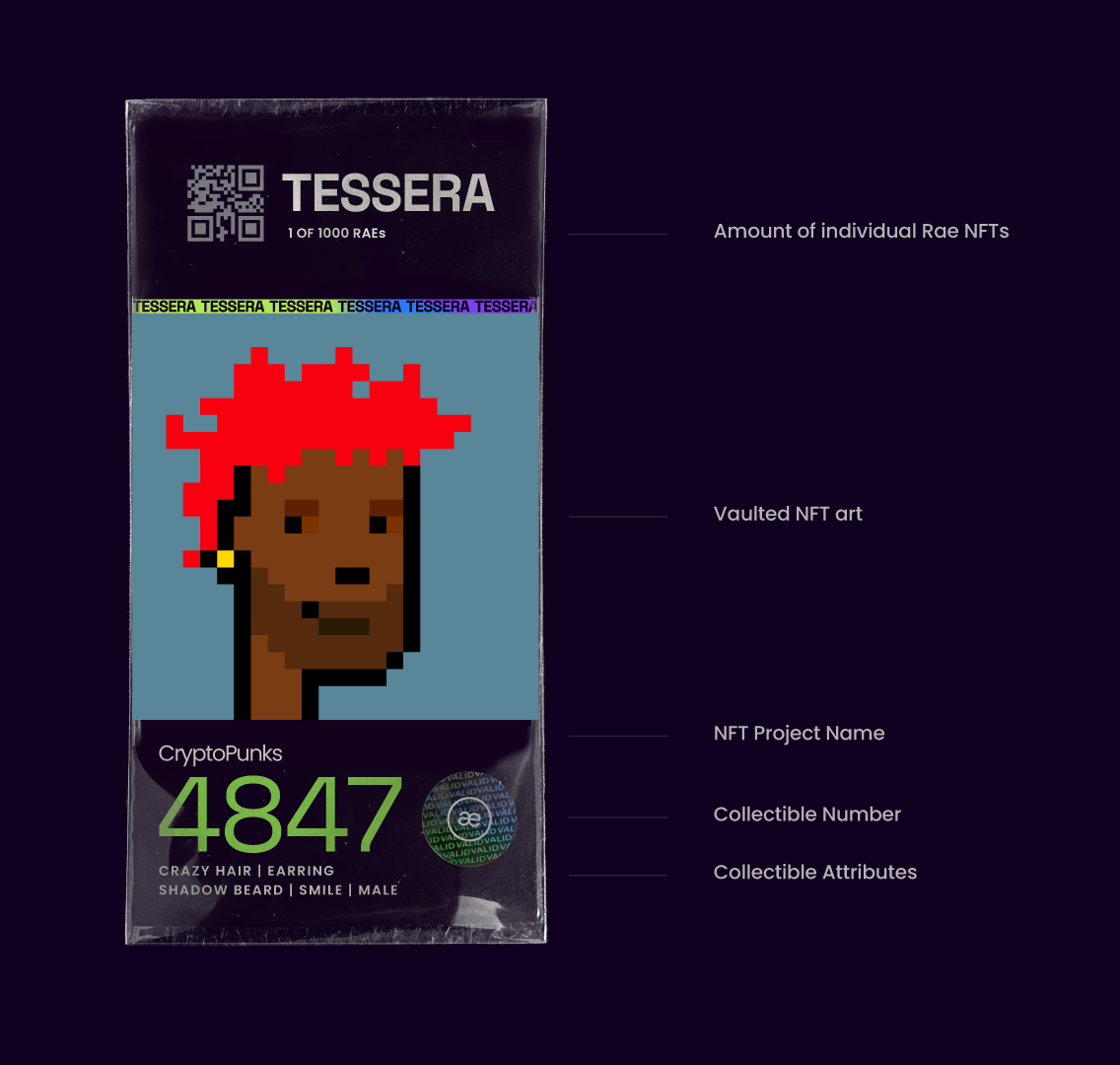 Solution: We utilized existing colors from Fractional.art (lime green) and focused on the relationship between the digital and physical worlds within each branding element. We captured the feeling of a physical trading card with each Rae NFT and kept things dark and space-themed throughout.